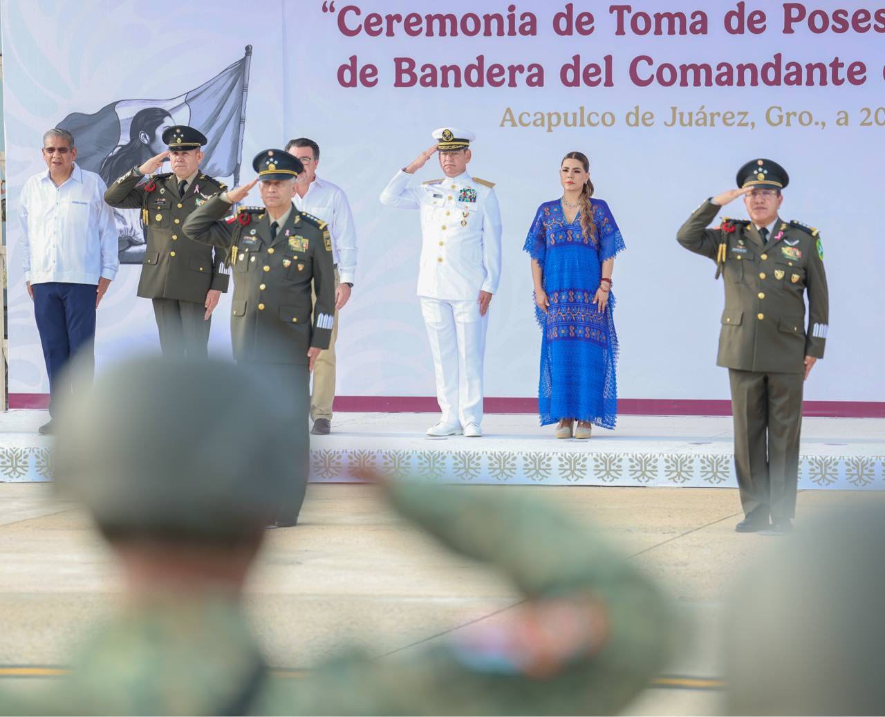 La gobernadora Evelyn Salgado Pineda encabezó el acto protocolario y destacó la trayectoria del nuevo mando, a quien calificó como un militar con amplia experiencia en estrategia y seguridad nacional, cuya labor fortalecerá las acciones coordinadas en favor de la paz y la estabilidad en Guerrero.