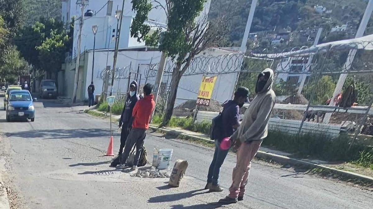 Ante esta situación, el Ayuntamiento de Chilpancingo en cuenta oficial la administración exhibió dos fotografías, en una de ellas se aprecia a cuatro sujetos con el rostro cubierto con cubrebocas y donde se observa que traen unos botes para solicitar cooperación voluntaria, según con el objetivo de reparar el bache.