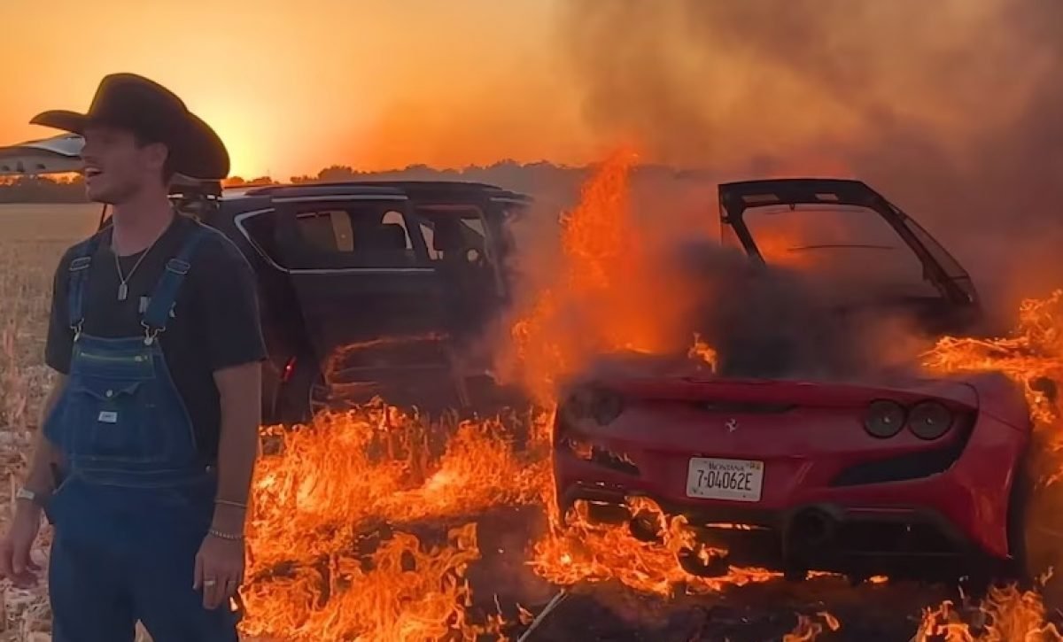 El episodio ocurrió en 2023, cuando Detwiler grabó una supuesta “prueba de durabilidad” con un Ferrari F8 Tributo en un campo de maíz seco. Durante la filmación, el superdeportivo fue expuesto a maniobras riesgosas que concluyeron con un incendio total del vehículo. Las imágenes se viralizaron rápidamente y generaron una fuerte reacción negativa por el peligro ambiental y la aparente imprudencia del acto.