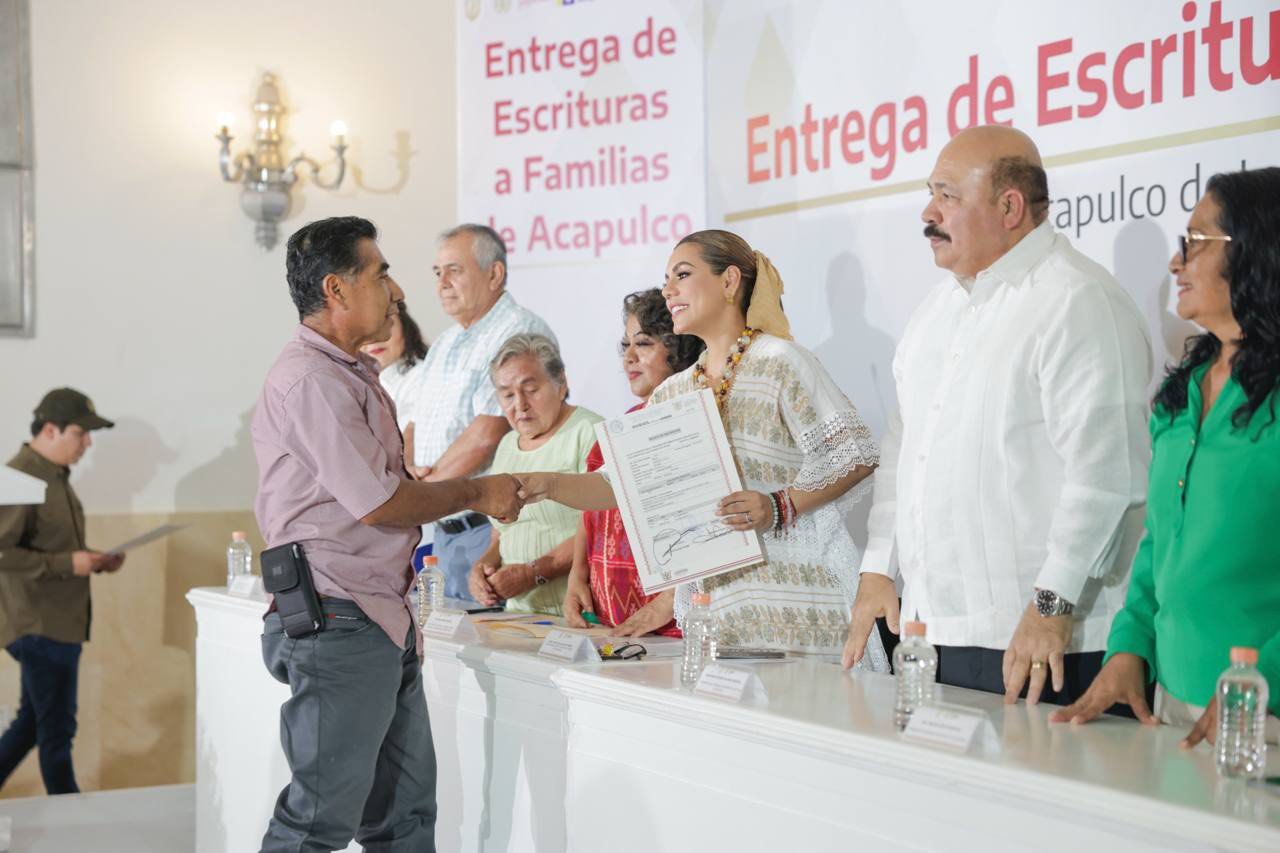 Con el objetivo de otorgar certeza jurídica y fortalecer el patrimonio familiar, la gobernadora Evelyn Salgado Pineda encabezó la entrega de 300 títulos de propiedad a habitantes de distintas colonias del puerto de Acapulco, como parte de las acciones de regularización de la tenencia de la tierra en la entidad.
