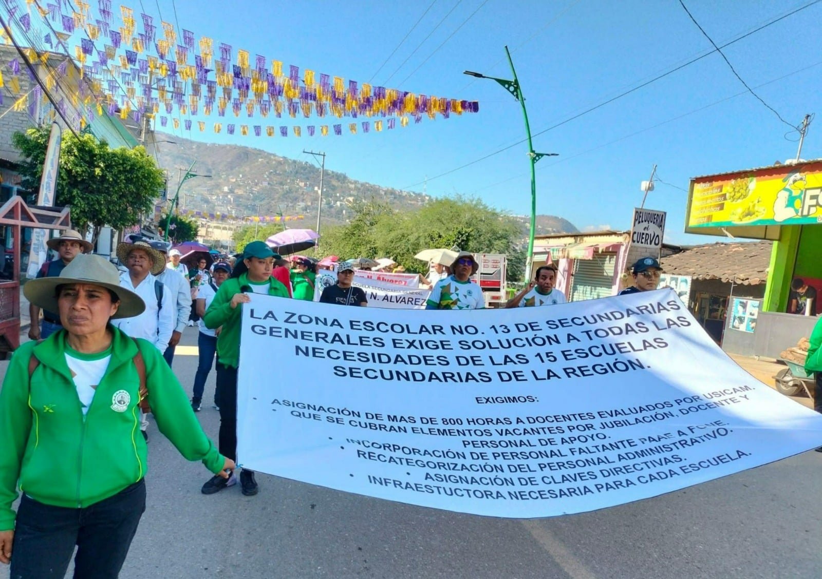Las principales calles fueron el escenario para que más de 400 maestros de un total de 15 Escuelas Secundarias Generales de la región de La Montaña, marcharon por las principales calles de la ciudad de Tlapa, para manifestar su molestia de haber sido engañados por las autoridades educativas al no cumplir con los acuerdos firmados en las minutas, por lo que exigen una pronta solución al problema y que cumplan sus demandas.