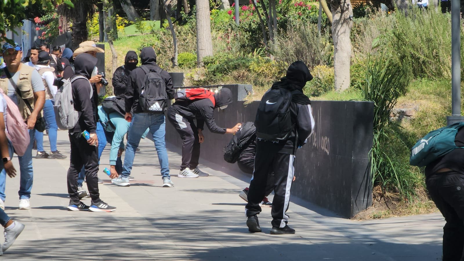 En este recorrido se pudo apreciar a muchos de los estudiantes que iban cubiertos del rostro y quienes aprovecharon esta incógnita para comenzar a vandalizar pintando diversos edificios públicos, en donde escribían “Justicia para Yanqui”, así como a los 43 estudiantes desaparecidos de Ayotzinapa en el 2014.